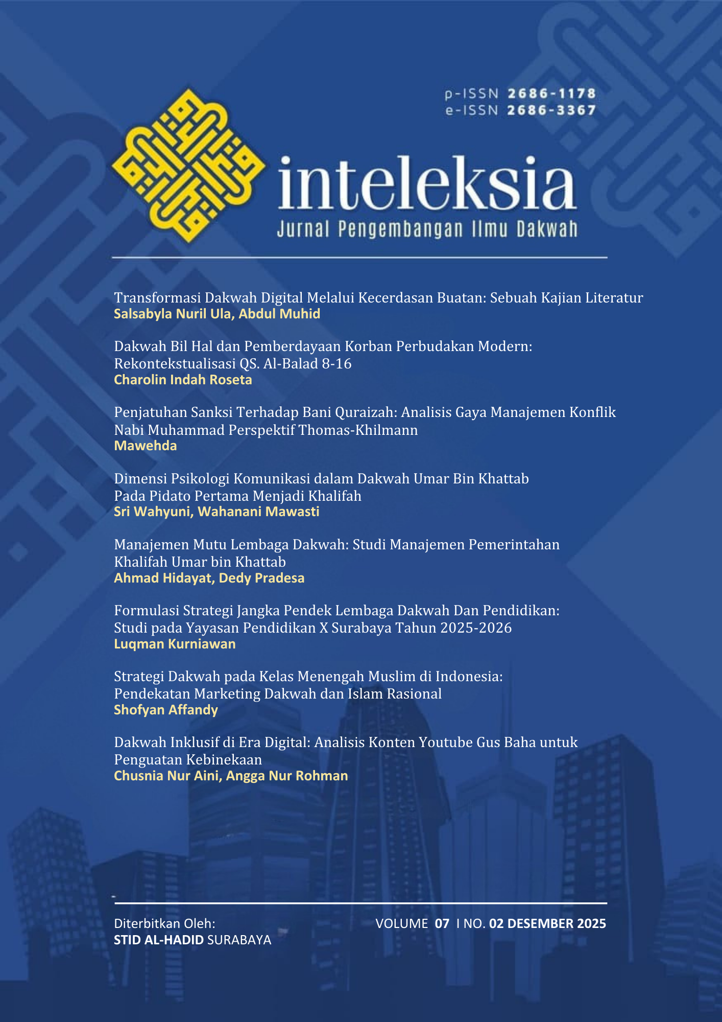 Artikel ini membahas praktik dakwah inklusif di era digital dengan menganalisis konten YouTube Gus Baha sebagai model penguatan kebinekaan di Indonesia. Latar belakang penelitian berangkat dari meningkatnya polarisasi sosial dan penyebaran narasi keagamaan eksklusif di ruang digital yang berpotensi melemahkan harmoni sosial. Penelitian ini bertujuan mengidentifikasi bentuk-bentuk dakwah inklusif yang ditampilkan dalam ceramah Gus Baha serta menilai kontribusinya terhadap pembentukan wacana keberagaman yang moderat. Analisis dilakukan dengan pendekatan teori komunikasi dakwah, Islam inklusif, dan studi media digital. Metode yang digunakan adalah analisis isi kualitatif terhadap sejumlah video ceramah yang dipilih berdasarkan relevansi tema, intensitas pesan toleransi, serta tingkat keterlibatan audiens. Hasil penelitian menunjukkan bahwa Gus Baha secara konsisten menghadirkan narasi keagamaan yang menekankan penghargaan terhadap perbedaan, rekonsiliasi sosial, dan pemahaman teks keagamaan yang humanis. Konten dakwahnya memperlihatkan efektivitas medium digital dalam memperluas jangkauan pesan moderasi beragama sekaligus memperkuat nilai kebinekaan di ruang publik digital. Temuan ini menegaskan pentingnya optimalisasi platform digital sebagai ruang produksi wacana keagamaan yang inklusif.